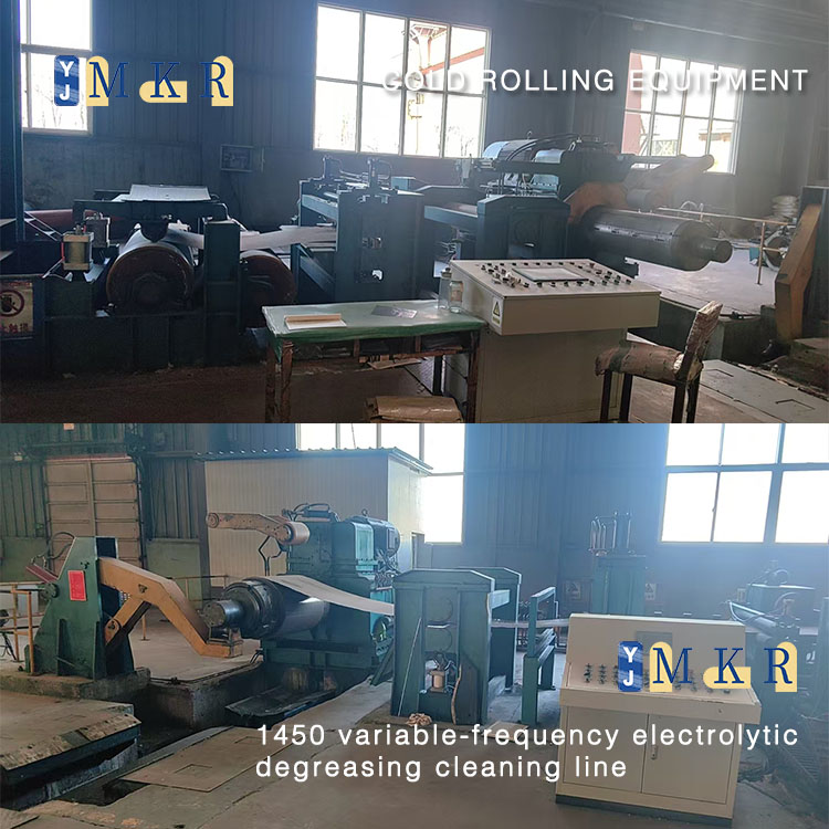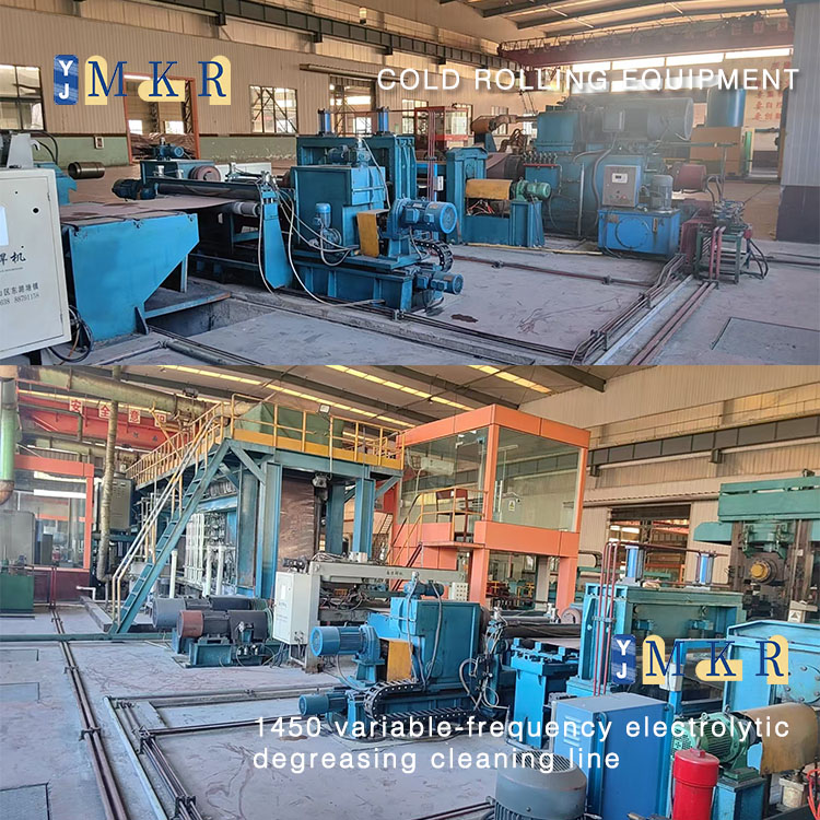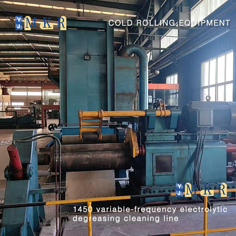 We sell 90% new 1450 variable-frequency electrolytic degreasing cleaning line, front and rear rewinding and unwinding equipped with guiding machine, with cutting edge disc shears, welding machine.