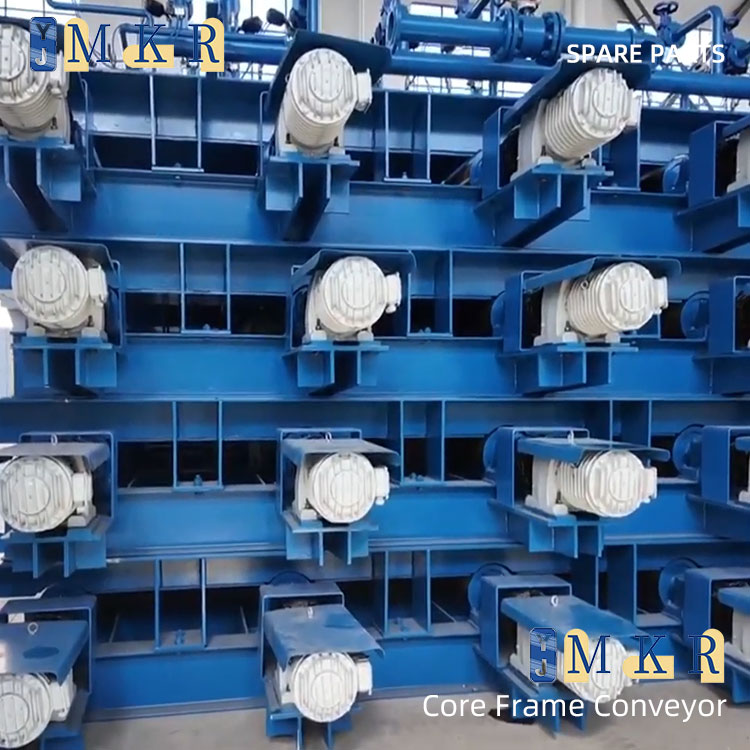 The core frame conveyor roller bed is an automated equipment specifically used for material transportation in the core manufacturing process. It is mainly used in the core production line to smoothly and efficiently transport the core frame and the core it carries from one station to the next, ensuring the continuity and stability of the entire core production process.