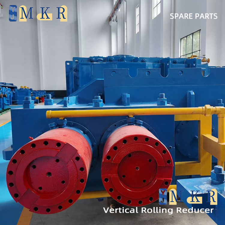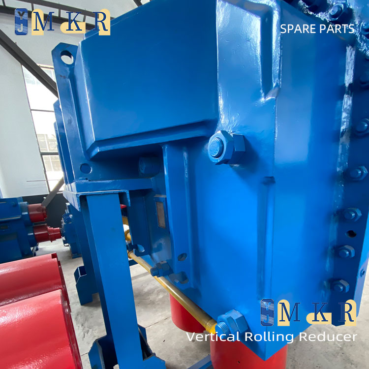 The vertical rolling reducer achieves the function of reducing speed and increasing torque through an internal gear transmission system. The power of the motor is transmitted to the primary drive gear through the input shaft. The primary drive gear meshes with the primary transmission gear, transmitting the power to the first transmission shaft. Then, the power is transmitted to the second transmission shaft through the drive bevel gear and thetransmission bevel gear. Subsequently, the power is transmitted to the lifting and rotating shaft through the secondary drive gear and the secondary transmission gear. Finally, the power is output to the rolls by the output shaft, driving the rolls to rotate.